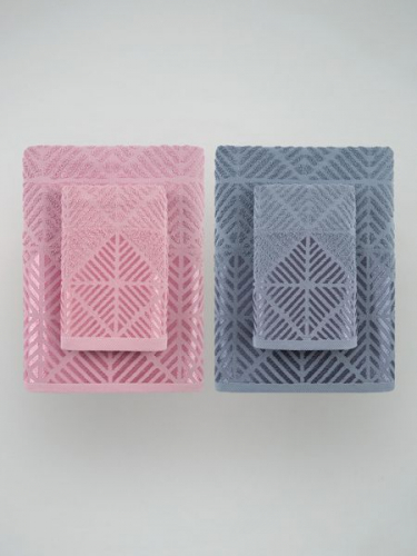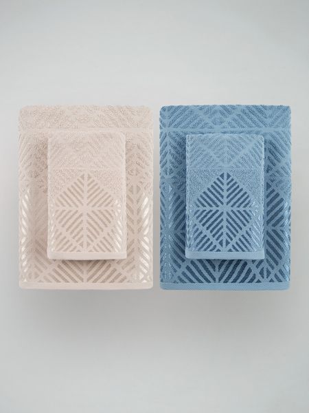 Набор полотенец махровых - 4 шт Diana Трапецио (Мокко/Темно голубой) Гутен Морген