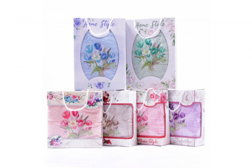 Набор полотенец махровых Букет тюльпанов 9119 в коробке Л в Нижнем Новгороде