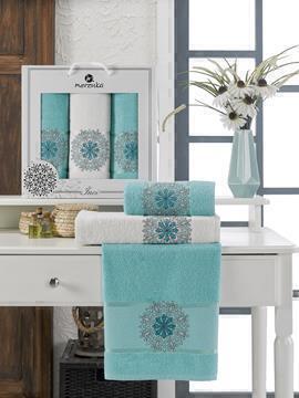 Набор полотенец махровых Inci Merzuka<3 предмета 50*80-2шт+70*130, бирюзовый> (арт.11294,11295)