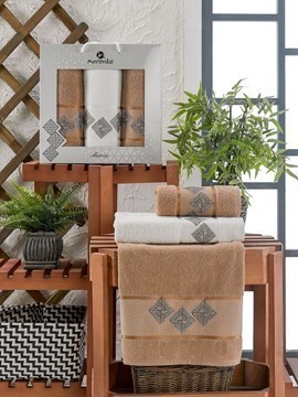 Набор полотенец махровых Matrix Merzuka<3 предмета 50*90-2шт+70*140, коричневый> (арт.11288,11289)