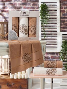 Набор полотенец махровых Rings Merzuka<3 предмета 50*90-2шт+70*140, коричневый> (арт.11040,11041)