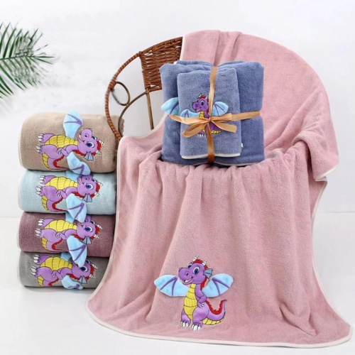 Набор полотенец микрофибра 624 СИРЕНЕВЫЙ ДРАКОНЧИК 2 пр р-р 70х140 и 35х75 - пудра