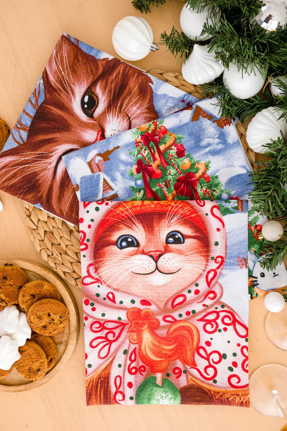 Этот набор полотенец Время сказочных историй - идеальный подарок на Новый год для любителей красивых и уютных вещей. В комплект входят 3 полотенца с петелькой, размером 60*48 см, изготовленные из вафельного полотна из 100% хлопка. Каждое полотенце украшено новогодним принтом с милыми кошками, что придаст вашей кухне особый праздничный настрой. Цвет: белый; Материал: вафельное полотно;вафельное полотно; Состав: 100% хлопок.