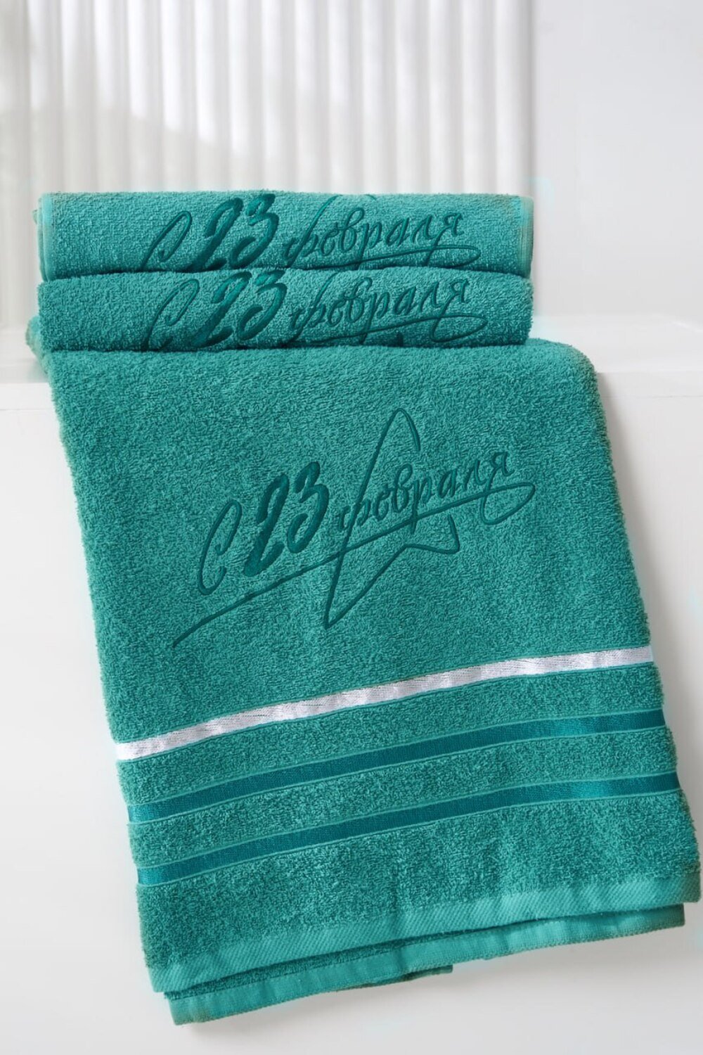 -Подарочное махровое полотенце С 23 февраля это отличный сувенир для настоящих мужчин в честь Дня защитника Отечества! Глубокий зелёный цвет, тематическая вышивка со стильной надписью и звездой делают это полотенце ярким и значимым подарком. Оно изготовлено из прочного и мягкого хлопка, прекрасно впитывает влагу и быстро сохнет, обеспечивая комфорт после душа или бани. Такое полотенце подчеркнёт внимание, заботу и уважение идеальный выбор для коллег, друзей и близких мужчин!