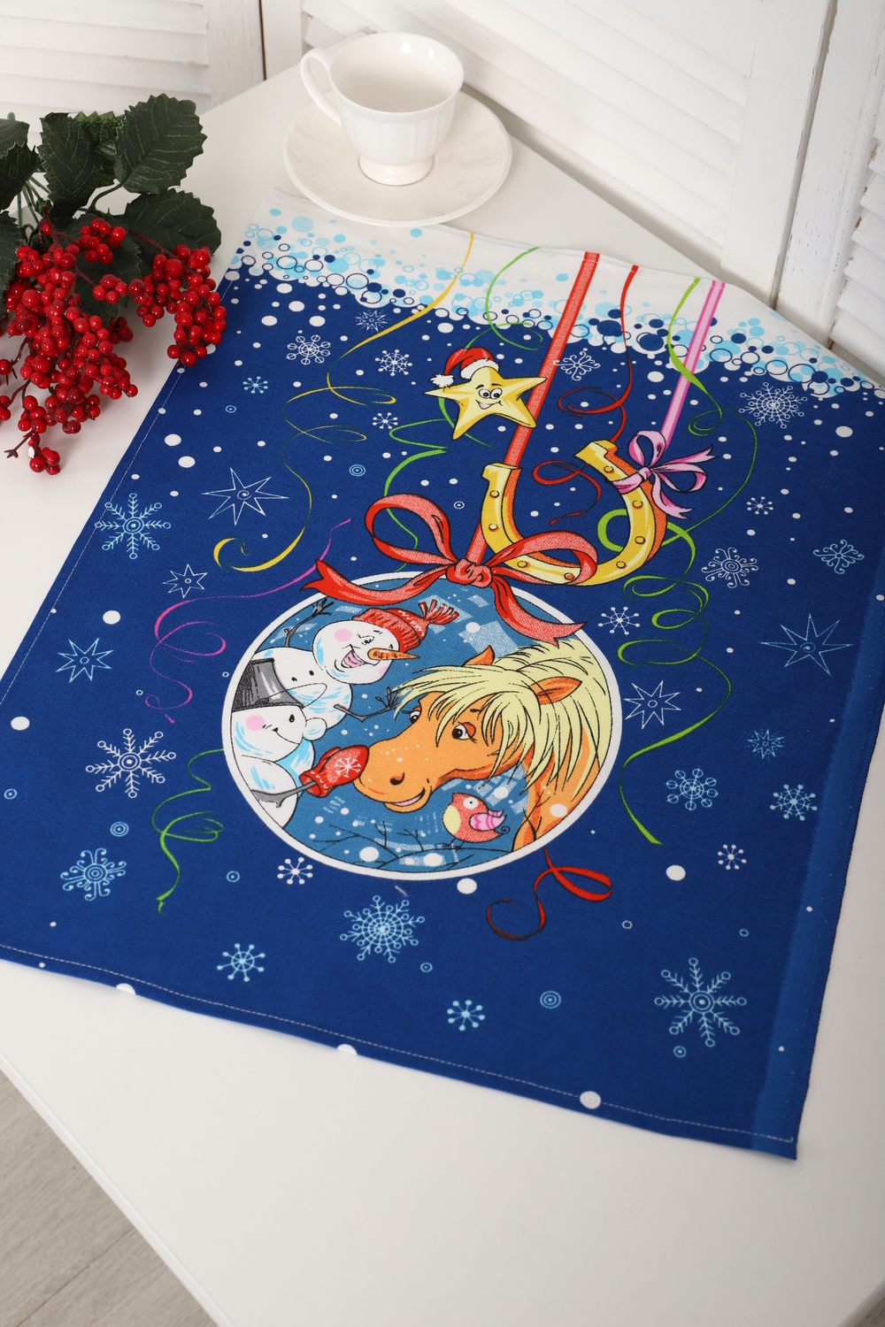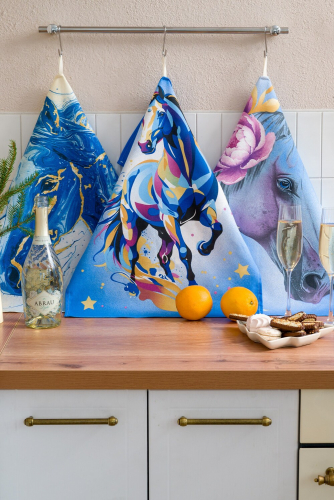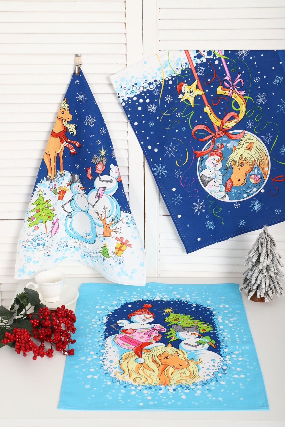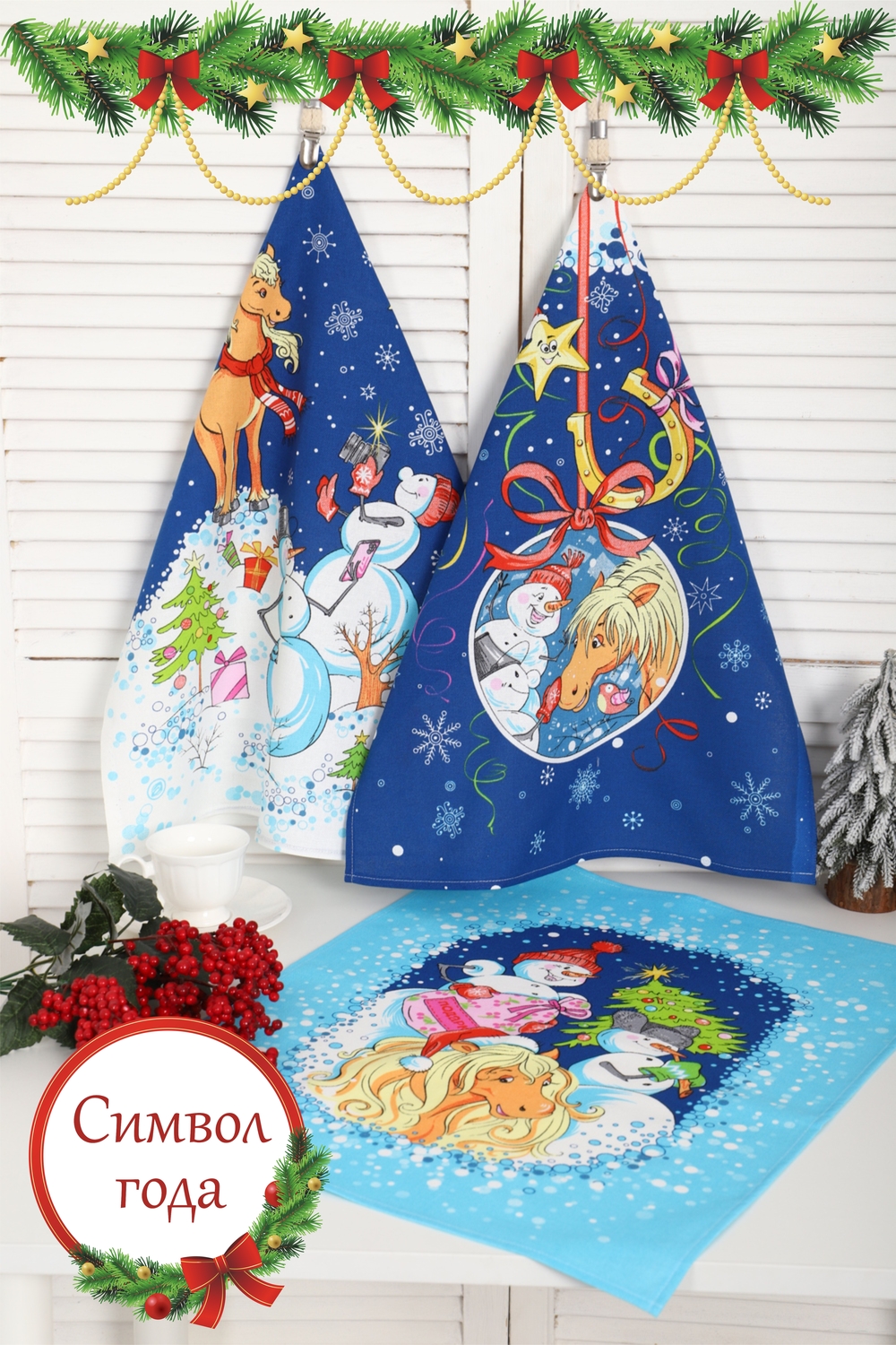 Набор из трех кухонных полотенец изготовлен из прочного хлопчатобумажного полотна - рогожка. Благодаря высокой гигроскопичности ткани, полотенца отлично выполняют свою функцию на кухне. Со временем они не теряют краски и сохраняют размер. Каждое полотенце имеет индивидуальный рисунок с символикой приближающегося 2026 года. Такой приятный и нужный подарок порадует вас и ваших родных, друзей, коллег в преддверии любимого праздника. Цвет: синий; Материал: рогожка;рогожка; Состав: 100% хлопок.