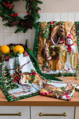 Набор из трех кухонных полотенец изготовлен из прочного хлопчатобумажного полотна - рогожка. Благодаря высокой гигроскопичности ткани, полотенца отлично выполняют свою функцию на кухне. Со временем они не теряют краски и сохраняют размер. Каждое полотенце имеет индивидуальный рисунок с символикой приближающегося 2026 года. Такой приятный и нужный подарок порадует вас и ваших родных, друзей, коллег в преддверии любимого праздника. Цвет: серый; Материал: рогожка;рогожка; Состав: 100% хлопок.