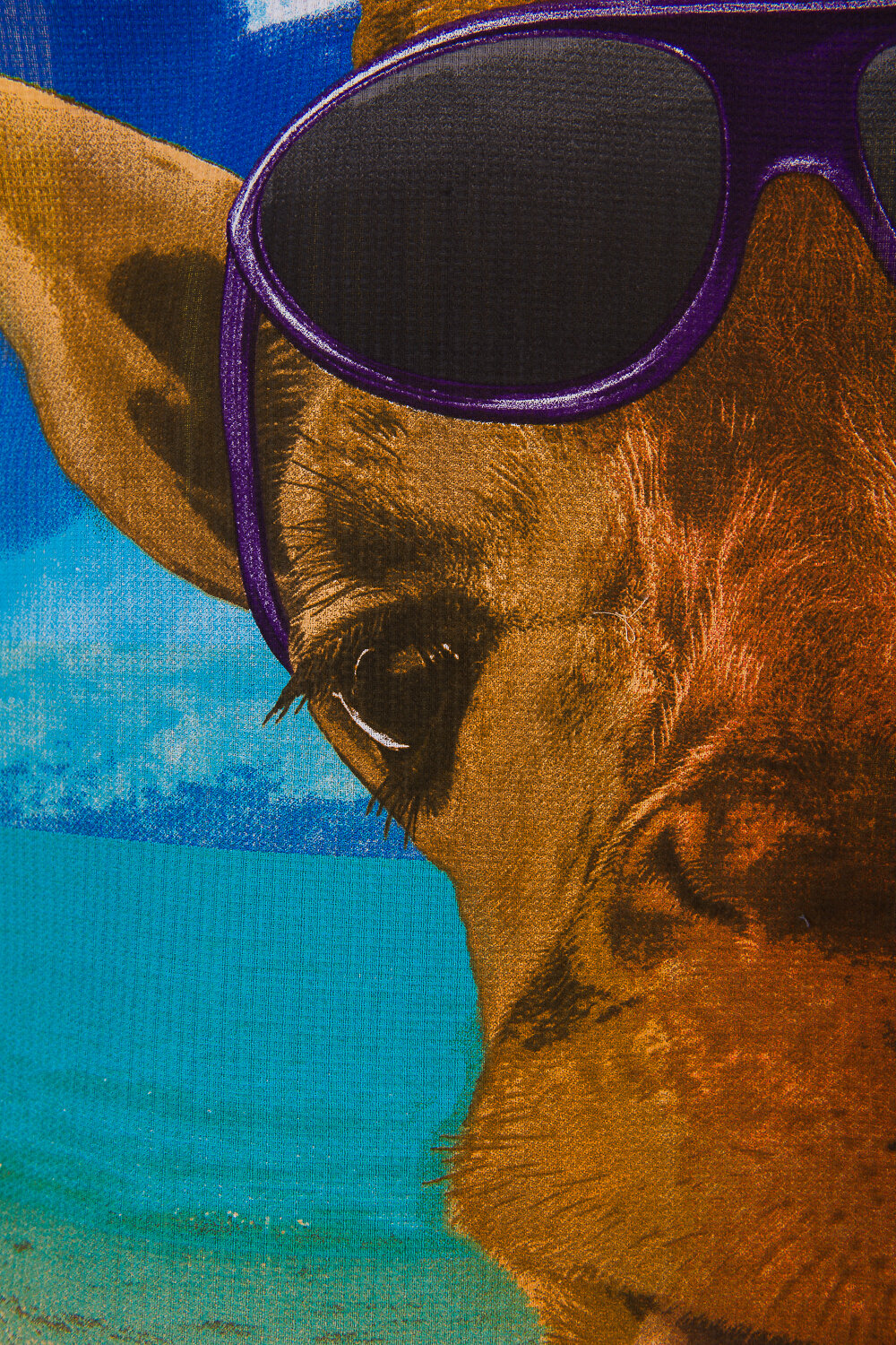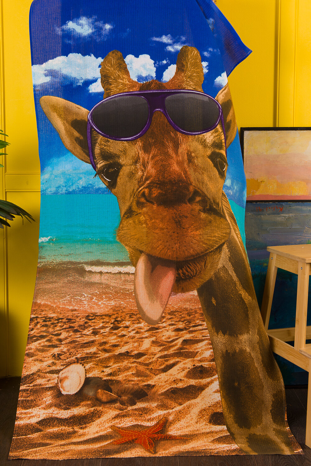 Банное вафельное полотенце с изображением веселого жирафа, размером 150*80, отлично подойдет для как для бани, так и для пляжа.