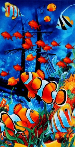 Пляжное полотенце велюр-махра "Подводный мир" 70*140 см. хлопок 100%