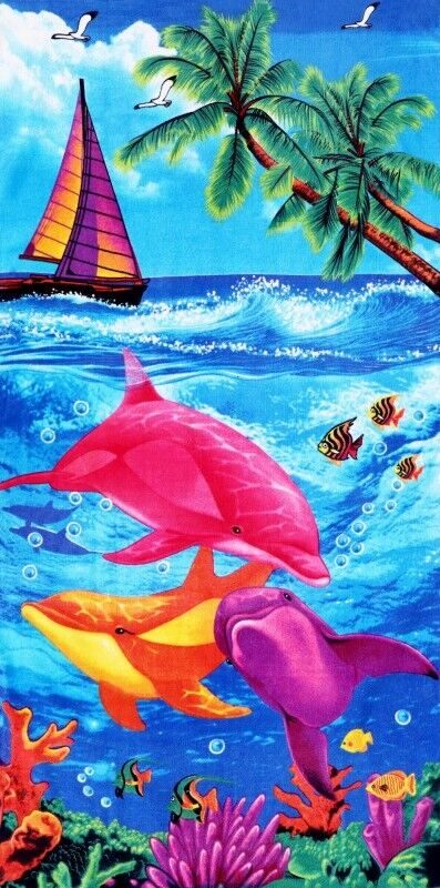 Пляжное полотенце велюр-махра "Розовый дельфин" 70*140 см. хлопок 100%41