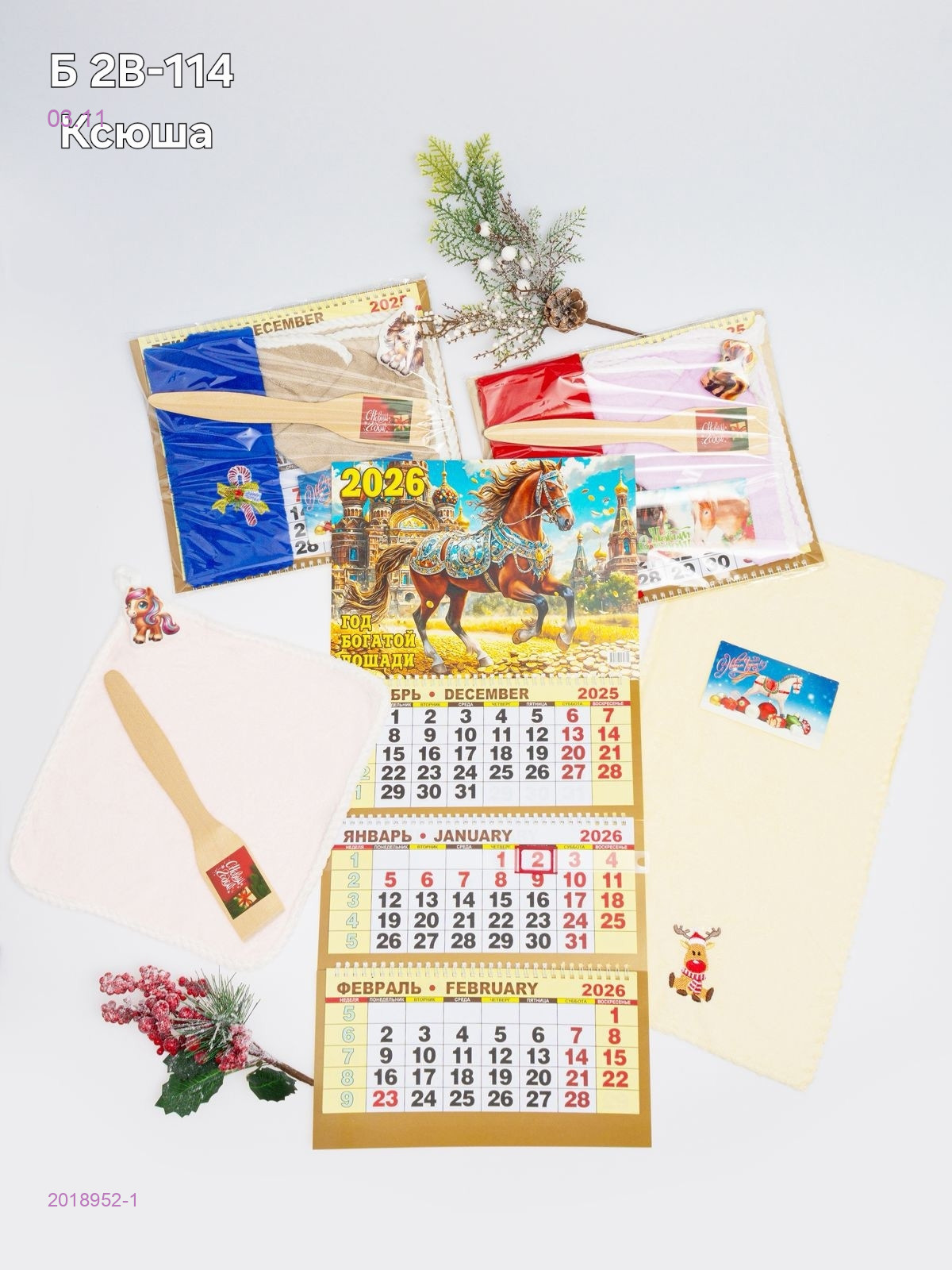 Цвет: Без Выбора ЦветаВнимание НОВИНКАНовогодний Подарочный набор 5в1 хит 2026Набор состоит из 5 предметов1 шт календарь настенный размер 65Х351 шт полотенце 25Х501шт салфетка с лошадкой 30Х30 1шт деревянная лопата 1шт открытка с новым годомЦена за наборОтличный вариант для подарка РАСЦВЕТКИ БЕЗ ВЫБОРА