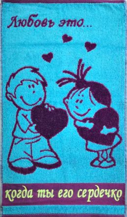 Полотенце 30х60 махровое Ты его сердечко 4765 (бирюза)