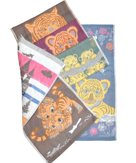 Полотенце "Цветные тигры" тканное двухслойное стеганое 25*50 см. хлопок 100%