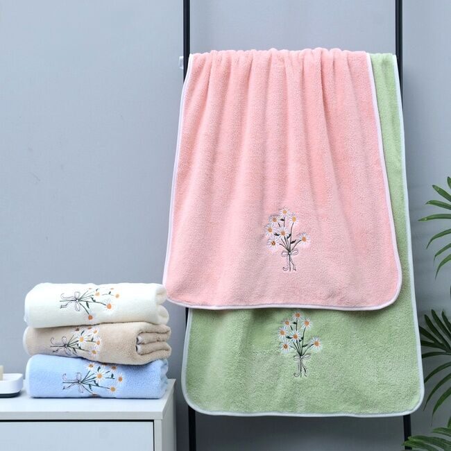 Полотенце из микрофибры "Букет ромашек" с вышивкой 35*75 см.