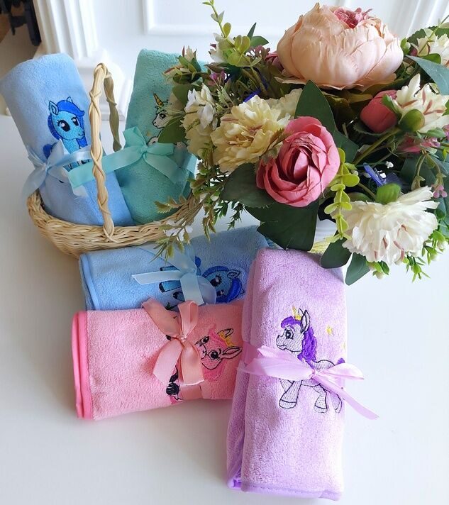 Полотенце "Цветные единорги" Символ года 2026!!! - красивое, быстросохнущее полотенце из невероятно мягкой ткани - микрофибры.