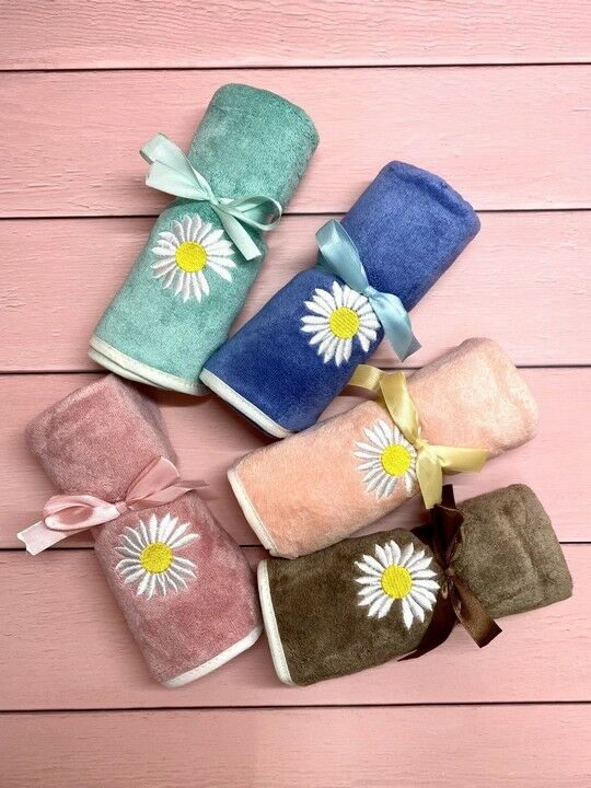 Полотенце из микрофибры "Ромашки" с атласной каймой 35*75 см.