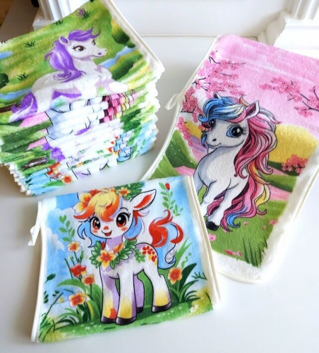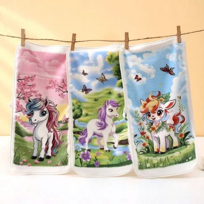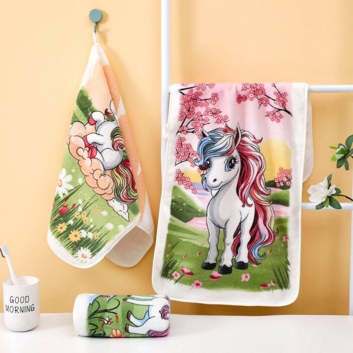 Полотенце из микрофибры "Сказочные пони" с атласной каймой 25*50 см.