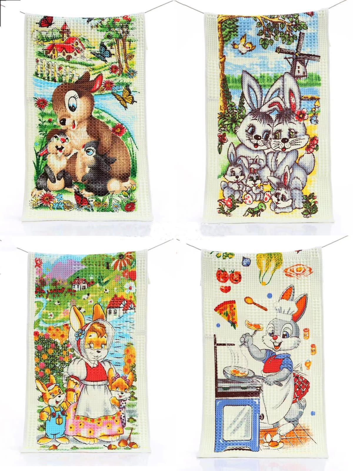 Полотенце крупная вафелька 203 ЗАЙЦЫ АССОРТИ р-р 35х75