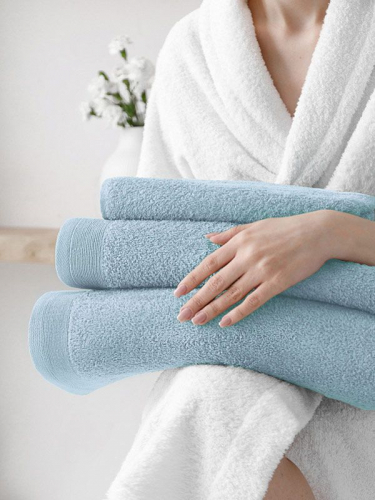 Материал ткани: махровое полотно; Состав: 100% хлопок; Плотность: 450 ± 5 г/м2; Тип изделия: полотенца; Цвет: голубой; Размер: 30х50 см