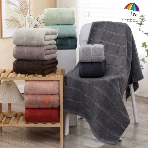 Полотенце махровое супербаня 2207606 КРУПНЫЙ КВАДРАТ р-р 90х160 - бежевый