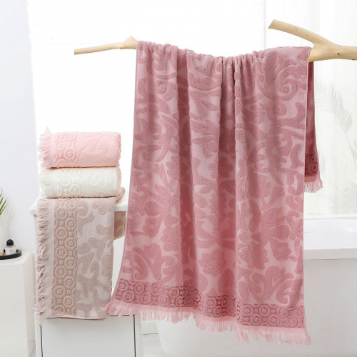 Полотенце махровое супербаня с бахромой 9525 УЗОРЫ р-р 90х160 - персиковый