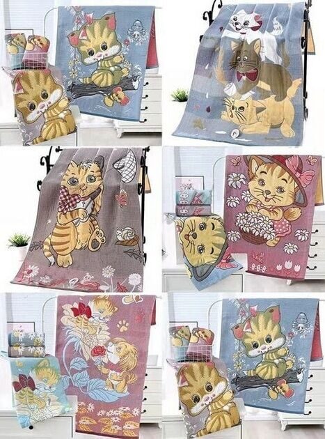 Полотенце "Милые котята" тканное стеганое 25*50 см. хлопок 100%