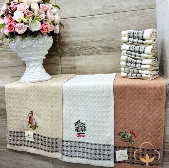 Полотенце "Оливковый микс" 25*50 см. вафля хлопок 100%