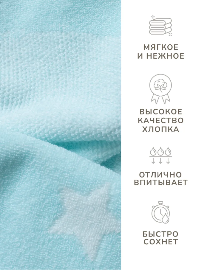 Изготовленное в России из качественной махры, полотенце обладает высокой плотностью 420 гр/м², что обеспечивает превосходное впитывание влаги и быстрое высыхание. Натуральный хлопок, используемый в производстве, проходит дополнительный этап расчесывания волокон, что делает полотенце особенно мягким и нежным на ощупь. Швейцарские стойкие красители, применяемые в производстве, гарантируют сохранение яркости цветов даже после множества стирок, при этом оставаясь безопасными для нежной детской кожи.