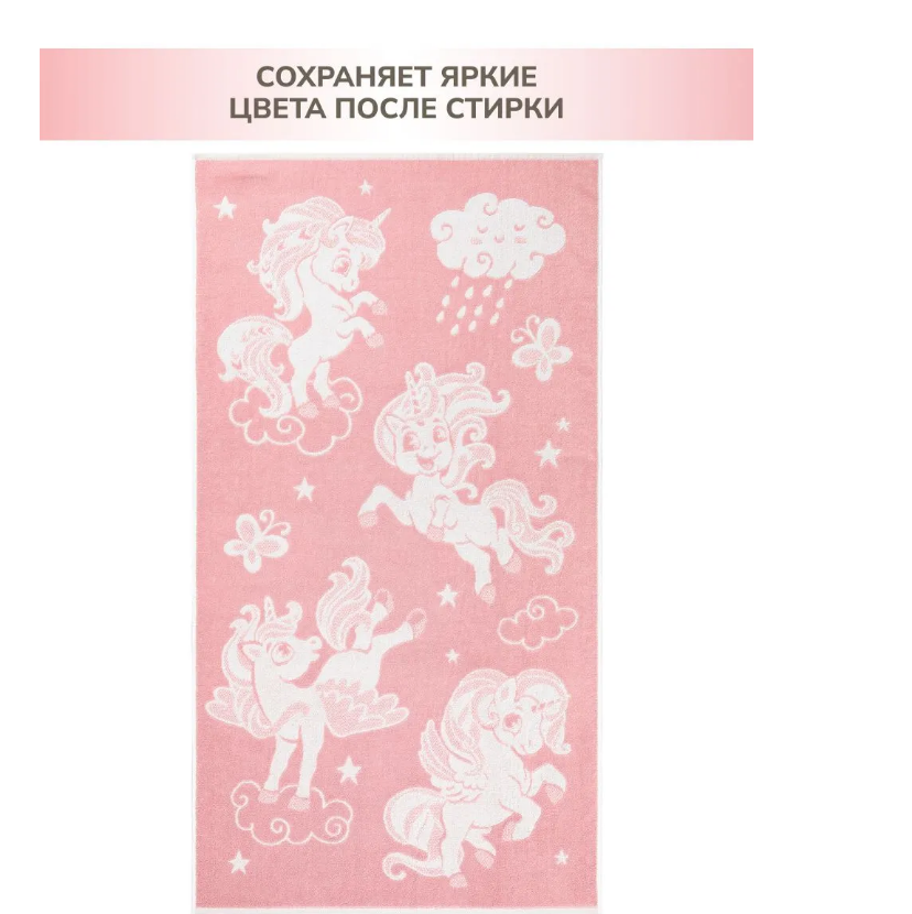 • Стильного дизайна. Выполненное в ярких оттенках полотенце с очаровательным принтом в виде единорогов — то, что не оставит равнодушными ни маму, ни ее ребенка. Благодаря оптимальному размеру и модному дизайну полотенце понравится и детям, и подросткам.
