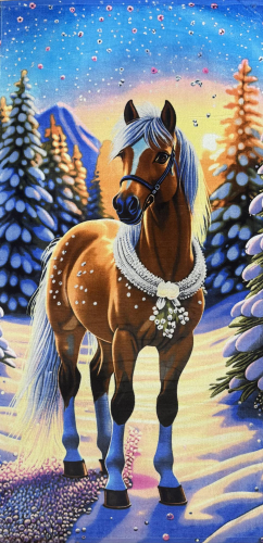 Полотенце пляжное ЛОШАДКА В СНЕЖНОМ ЛЕСУ р-р 70х140