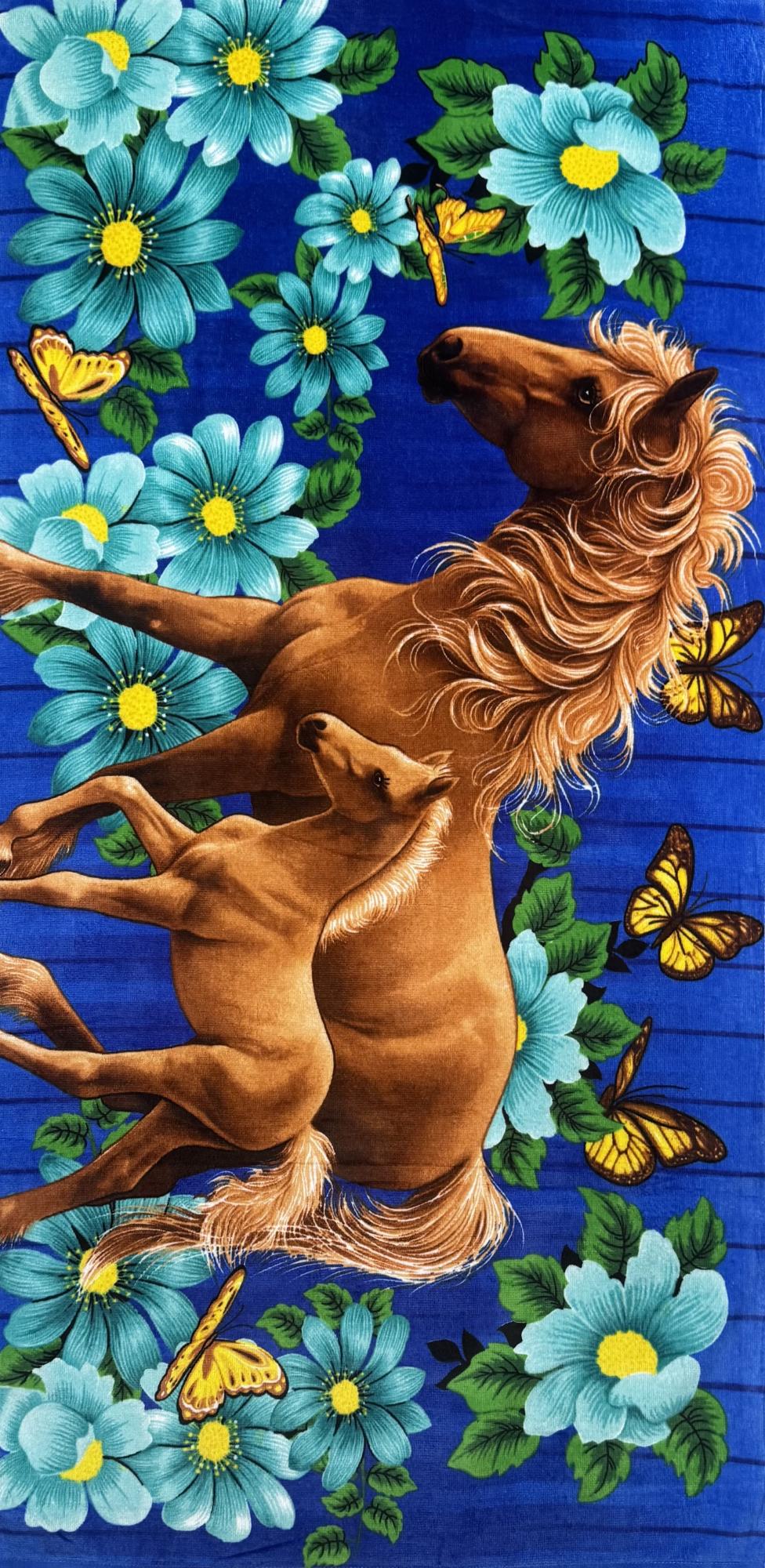 Полотенце пляжное ЛОШАДКИ В ЦВЕТАХ р-р 70х140
