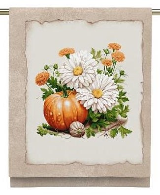 Полотенце рогожка 29353-1 ВИНТАЖНЫЕ ОТКРЫТКИ - тыква с ромашками р-р 50х60