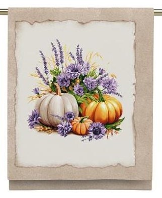 Полотенце рогожка 29353-1 ВИНТАЖНЫЕ ОТКРЫТКИ - тыква в цветах р-р 50х60