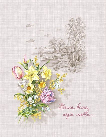 Полотенце рогожка 13143 - 1 КАПЕЛЬ - весна р-р 50х60