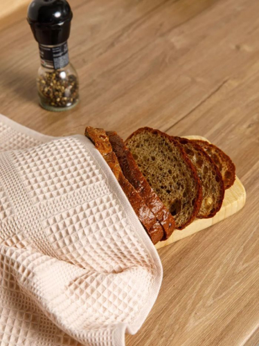 Материал ткани: вафельное полотно; Состав: 100% хлопок; Плотность: 260 ± 5 г/м2; Праздники: 8 марта; Тип изделия: полотенца; Производство: ООО "Баракат-текс"; Цвет: бежевый; Размер: 63х145 - 70х135 см