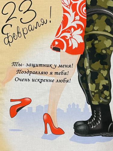 Полотенце вафельное 29188 - 1 ЗАЩИТНИК - солдат с девушкой р-р 50х60