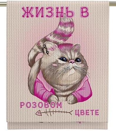 Полотенце вафельное 29268 - 1 РОЗОВЫЙ КОТ - жизнь в розовом цвете р-р 50х60