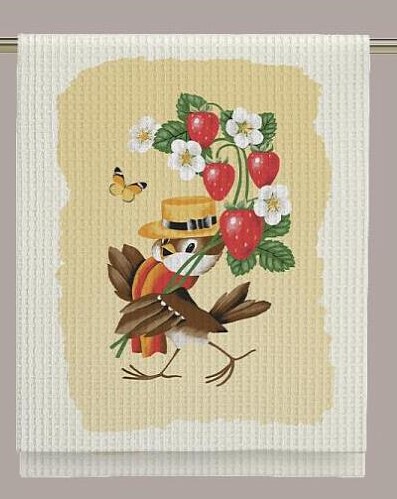 Полотенце вафельное 29356-1 ВИНТАЖНЫЕ ОТКРЫТКИ - птенчик р-р 50х60