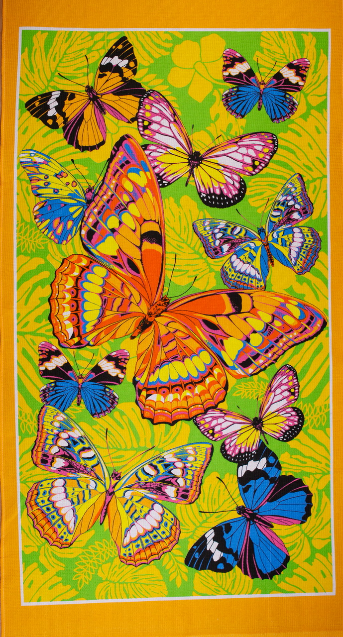 Полотенце вафельное банное БАБОЧКИ - желтый р-р 82х150