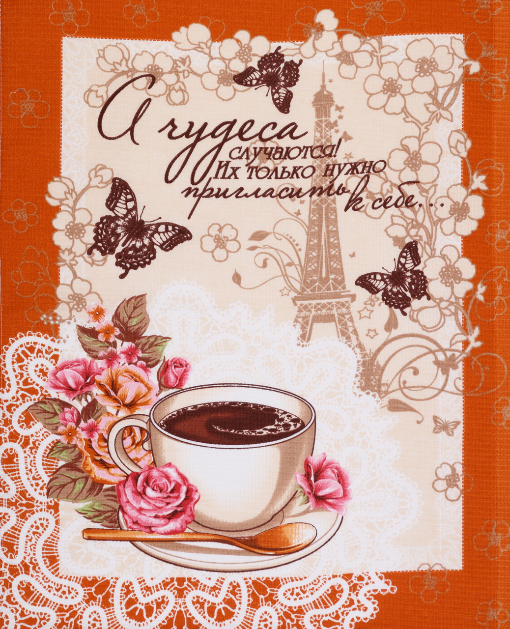 Полотенце вафельное КОФЕ ПАРИЖ - чудеса случаются р-р 50х60