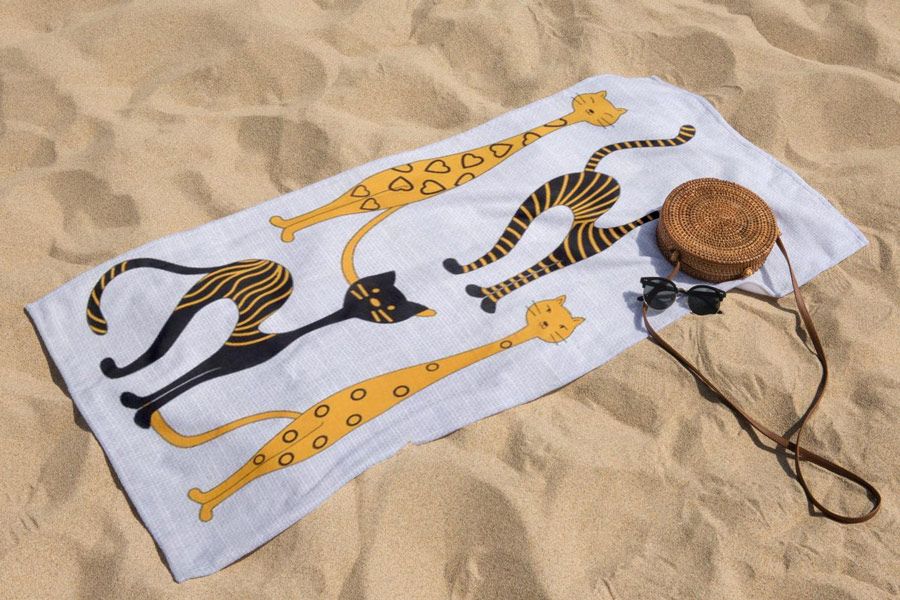 Полотенце вафельное пляжное - банное 75х150 см №76 Длинный кот
