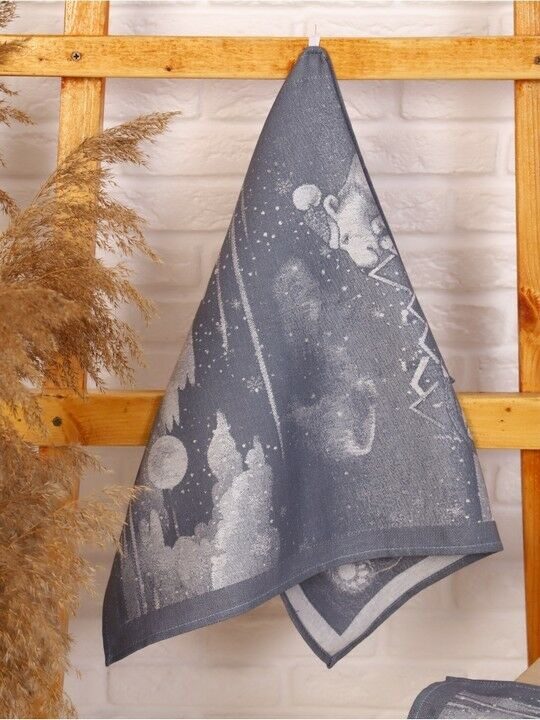 Полотенце Премиум "Белые медведи"-сер. 50*70 см. жаккардовое пестротканое с рождественским рисунком. Изготовлено из высококачественного хлопка по классической жаккардовой технологии. Практичное и очень нарядное.Такое полотенце украсит кухню в преддверии новогодних праздников. Очень прочное и мягкое, отлично впитывает влагу, легко стирается, долго служит.