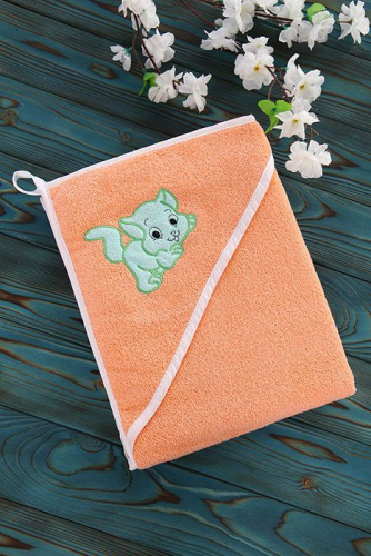 Уголок детский махровый 100х100 см с аппликацией, 028-Персиковый