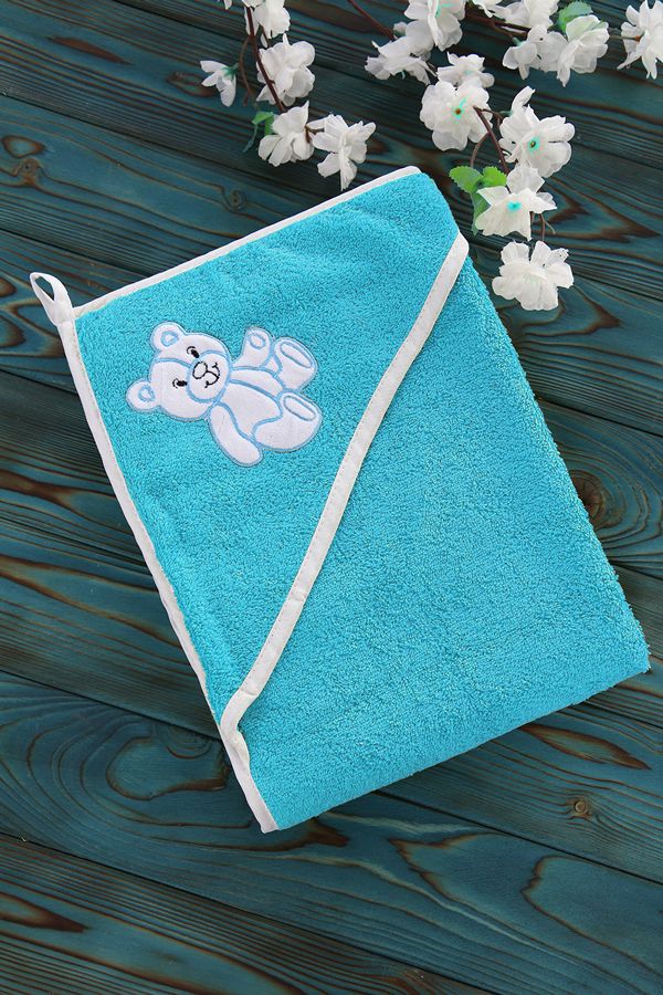 Уголок детский махровый 100х100 см с аппликацией, 502-Ярко-голубой