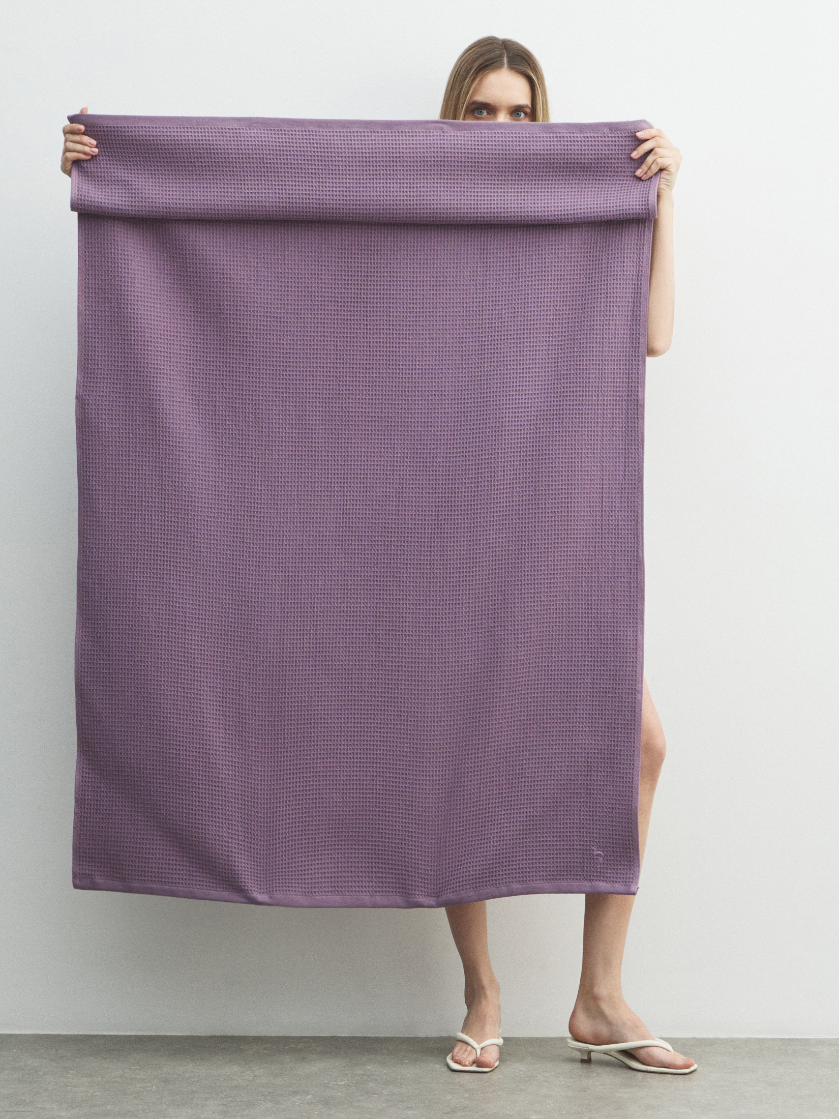 Вафельное банное полотенце 100x150 MAISON DAVID 4690417, серо-фиолетовый