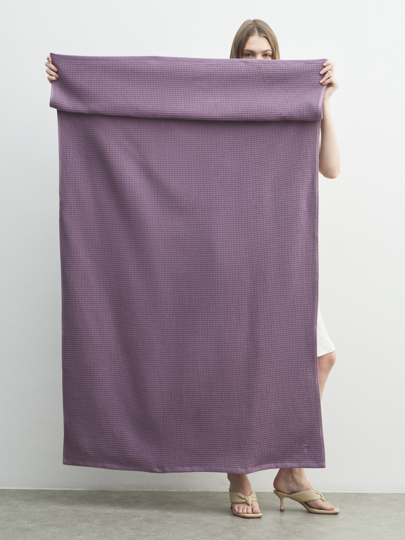 Вафельное банное полотенце 100x180 MAISON DAVID 4690528, серо-фиолетовый