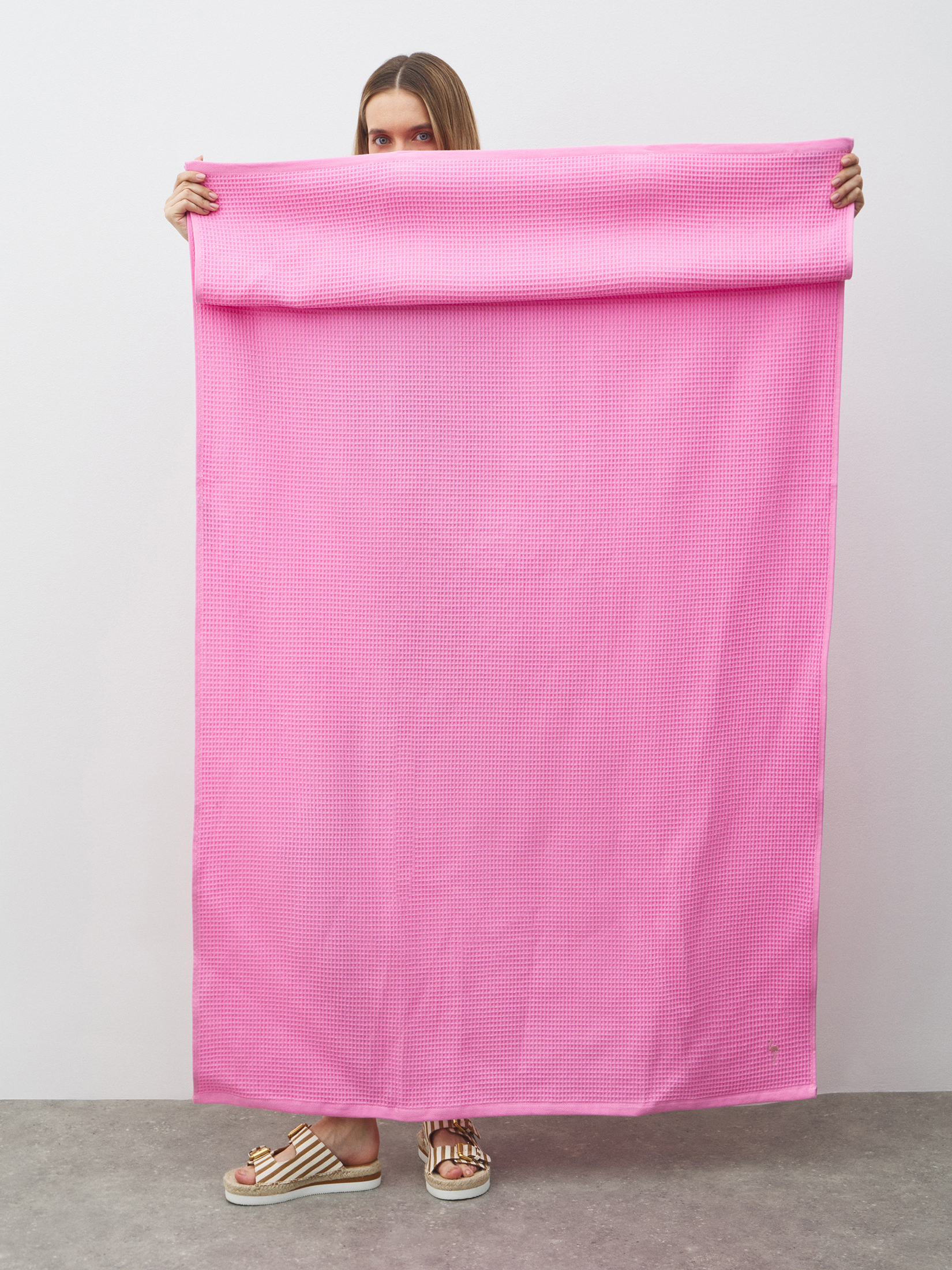 Вафельное банное полотенце 100x180 MAISON DAVID 4690526, ярко-розовый