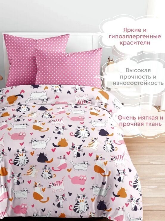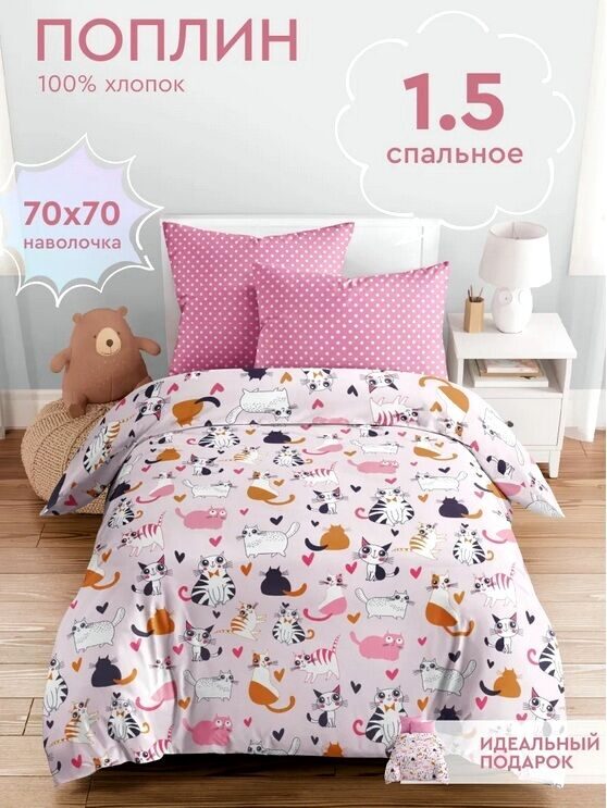 КПБ "Кошачья любовь" поплин хлопок 100% 1, 5 сп.