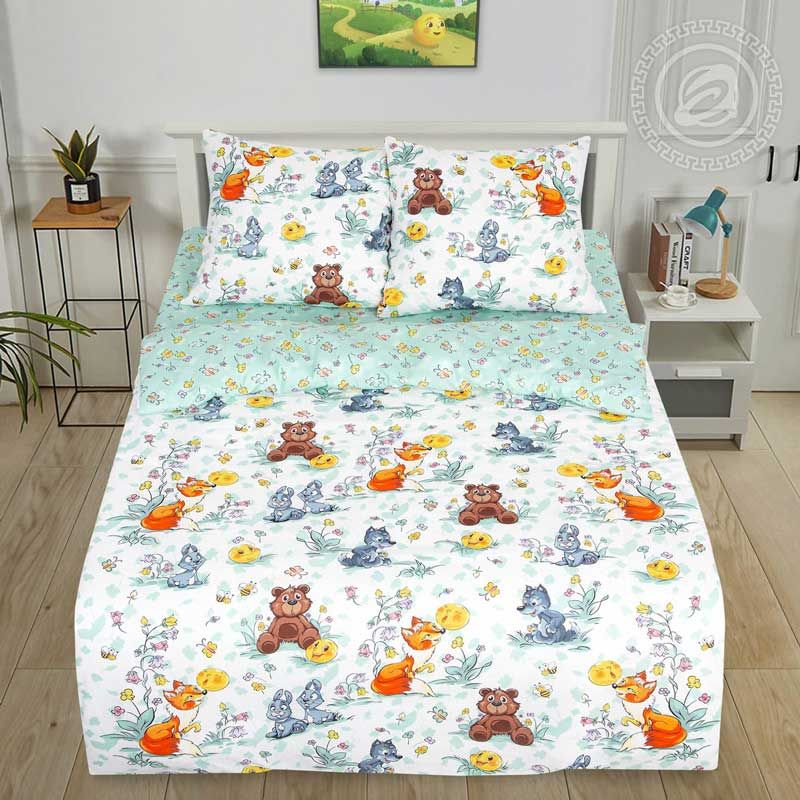 Тип изделия: КПБ; Размер: 1,5 сп; Материал ткани: поплин; Состав: 100% хлопок; Плотность: 115 ± 5 г/м2; Простыня: 145х215 см - 1 шт; Простыня на резинке: Нет; Пододеяльник: 145х215 см - 1 шт; Наволочка: 70х70 см - 2 шт; Производство: г. Иваново; Цвет: белыйзеленый