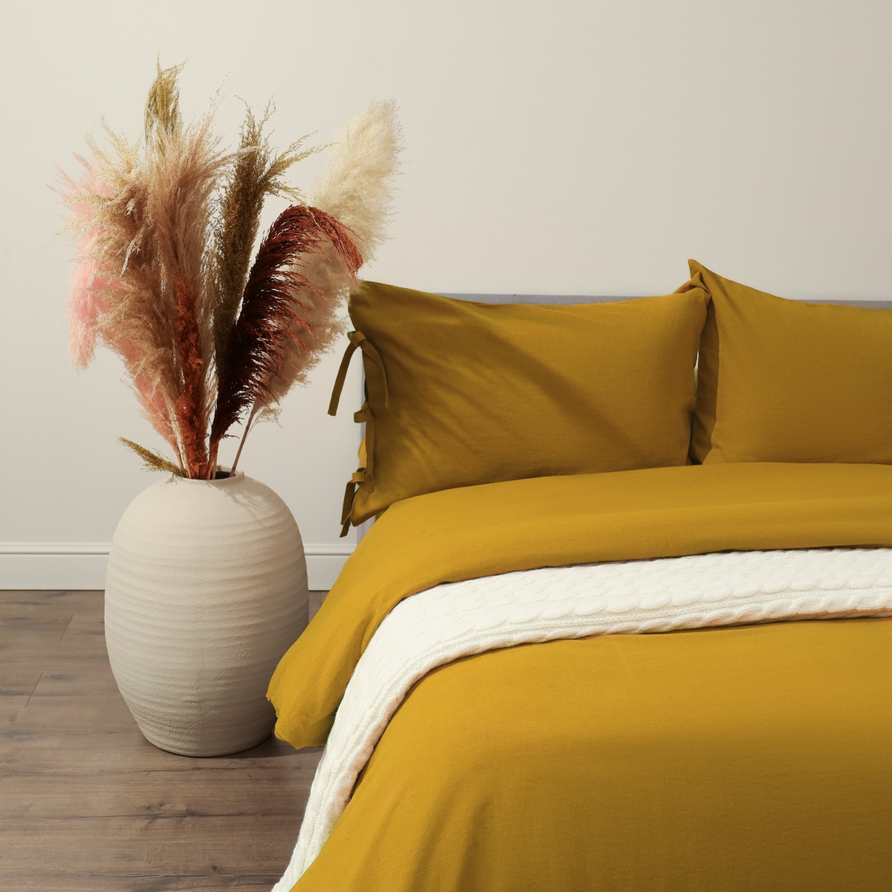 Комплект постельного белья однотонное с завязками на наволочке и пододеяльнике