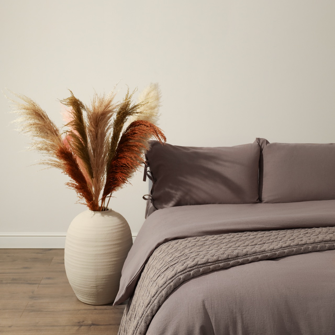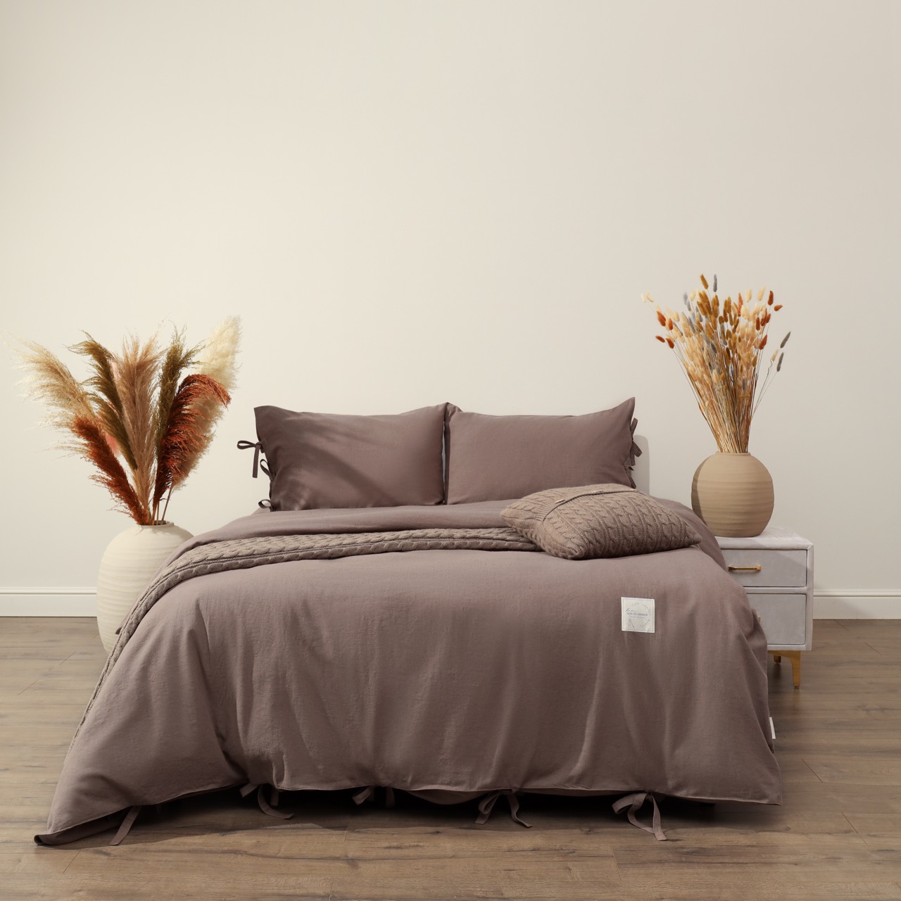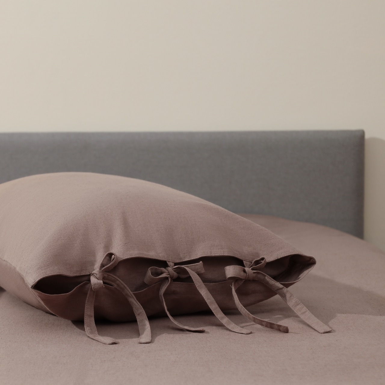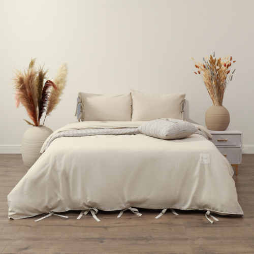 Комплект постельного белья однотонное с завязками на наволочке и пододеяльнике